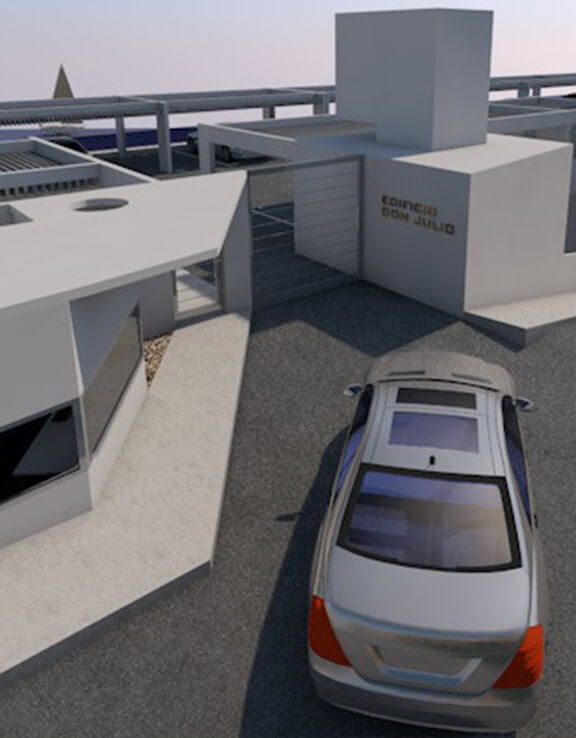 Con relación a sus proporciones, la volumetría del edificio multifamiliar constituye un paralelepípedo achatado que, a escala urbana, configura un zócalo lineal que se integra y armoniza con el contorno lineal de la playa y de los malecones (inferior y superior).